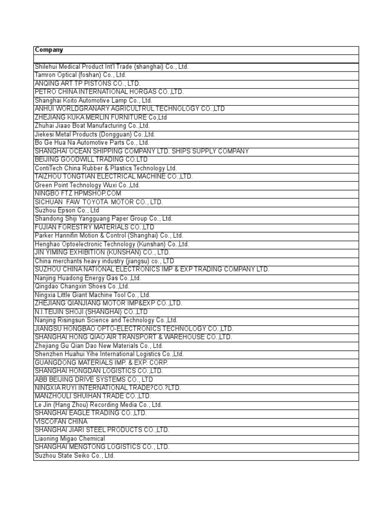 Importers database in china with more than 10000 companies selected from major importers of each product:
